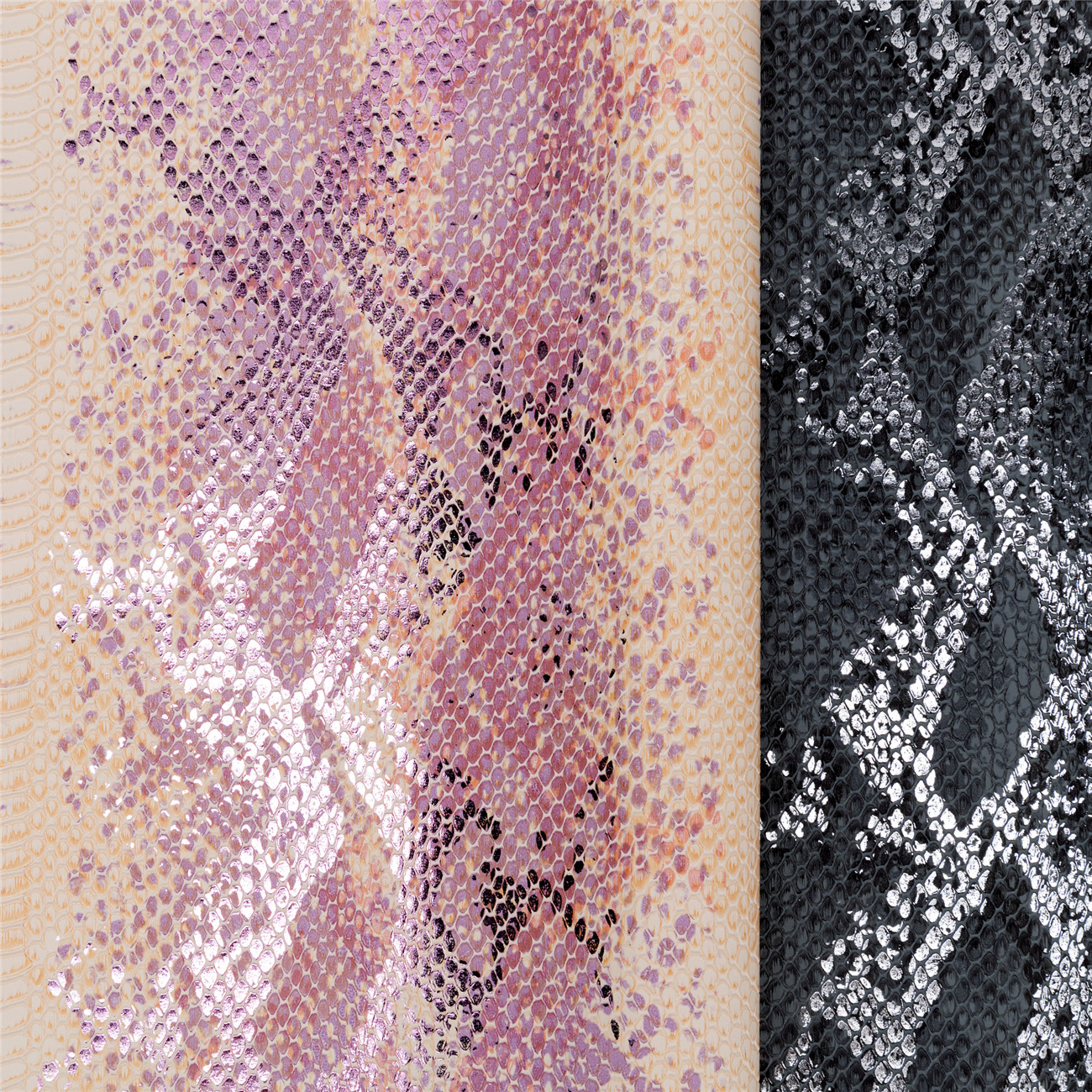 Material : Snake pattern with Metallic laminated leather PU