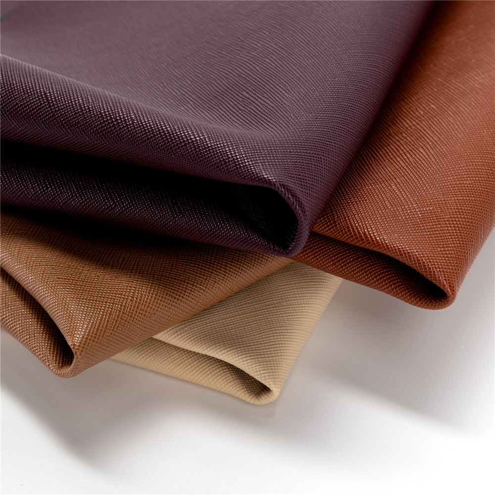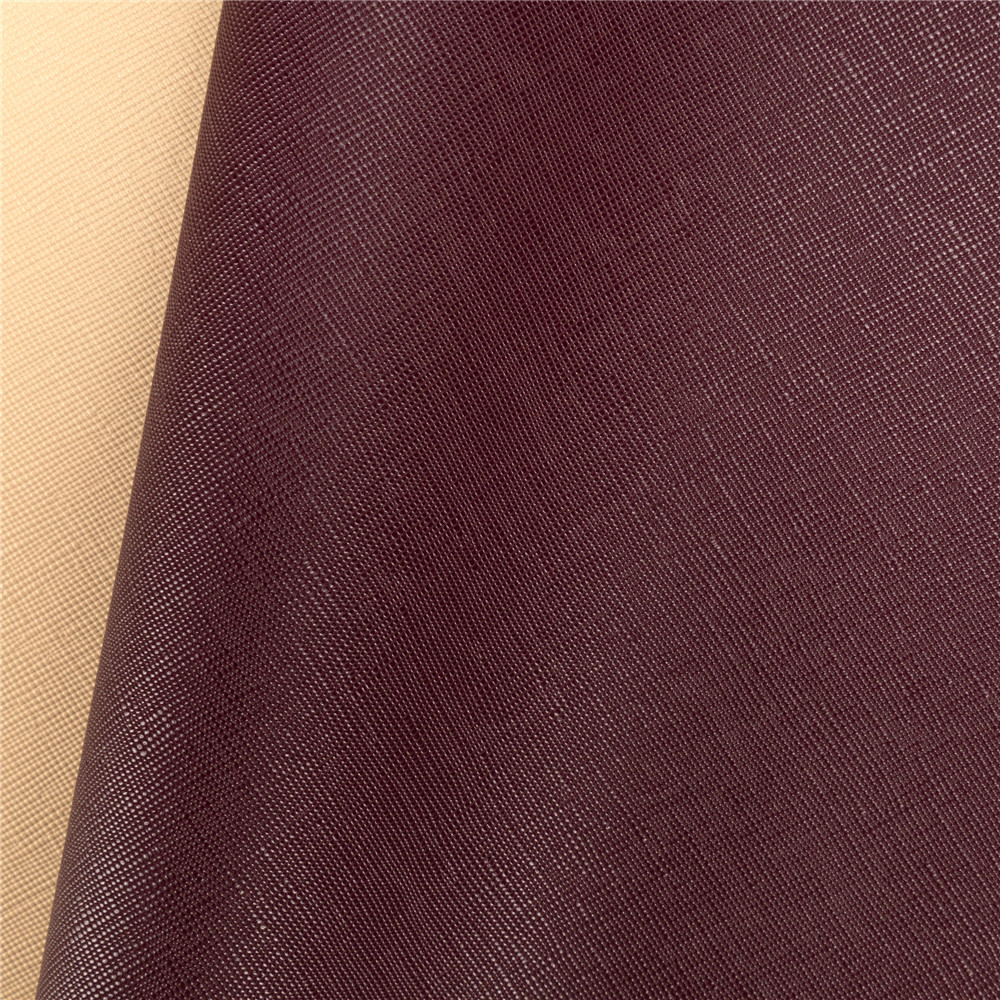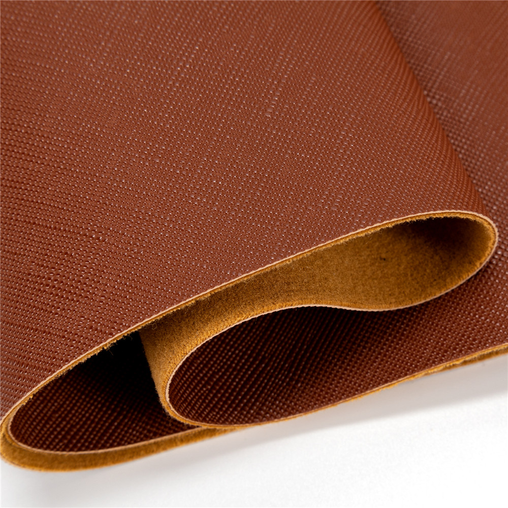 Saffiano Soft Artificial Leather PU with RPET Imitate Veleteen Fabric Backing,